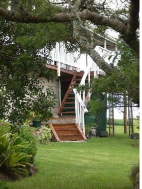 Vermont style, two story house with panoramic view of the Kleinemonde East River. Experience natures tranquility from all-round roofed deck with sea and river view. Experience true South African hospitality at this neat and cosy Guesthouse. Walks or Horse riding on these world renowned Beaches only 1600m away. Boating, Hiking, Bird watching, Fishing and whale watching is also available in our area.